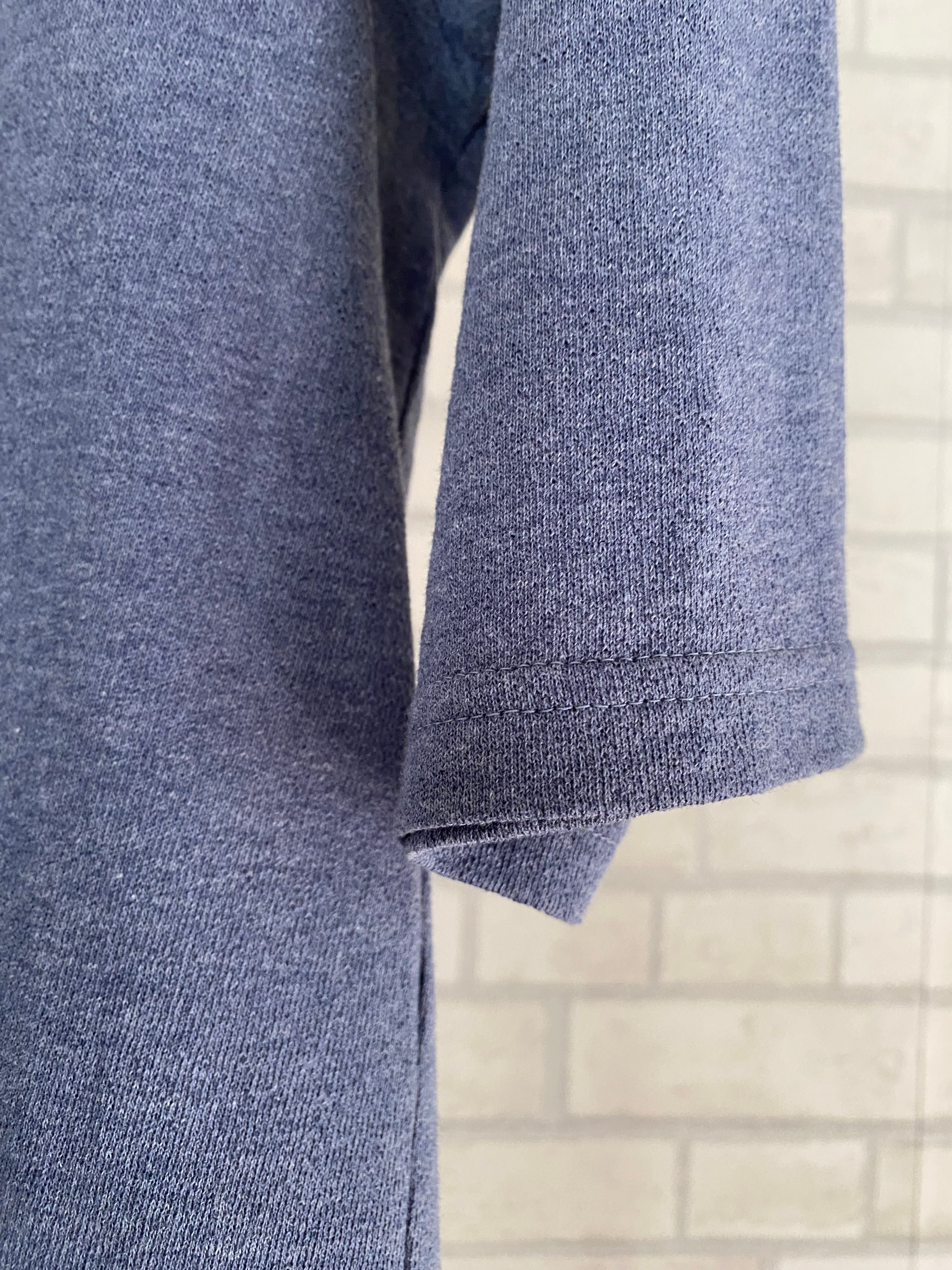 綿100ではありますがメンズウェアではあまり使われないジョーゼットという編み地 形状のある梨地はシックで上品 少し長めな袖丈も時代の空気感を感じさせてくれます カジュアルながら大人っぽい雰囲気は一角上のTシャツと言ったところ