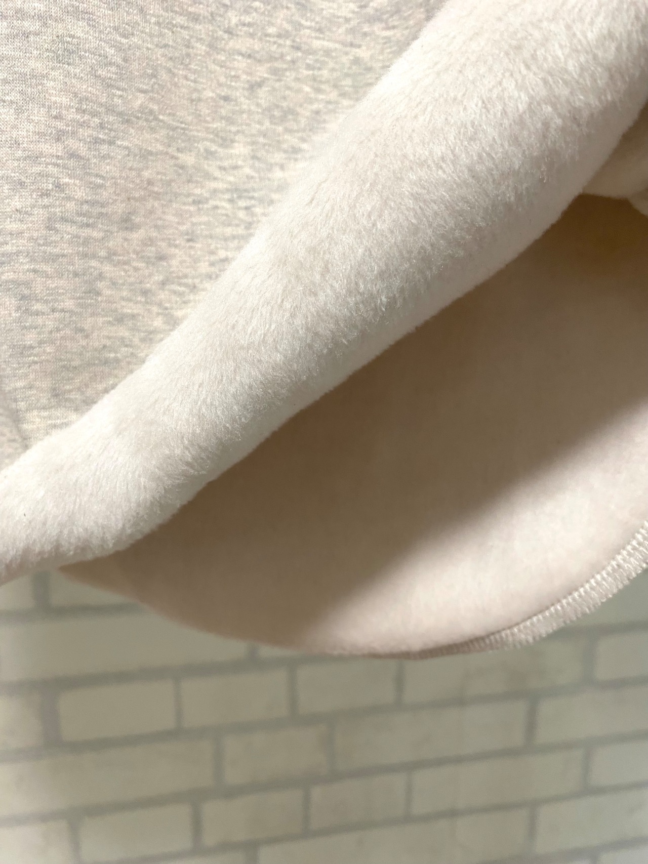 特殊な裏起毛を施した裏側は毛足の長いベロアのようでまるで毛布に包まれたかのような暖かさと直接着た時の肌触りの良さは圧倒的という言葉がぴったりです