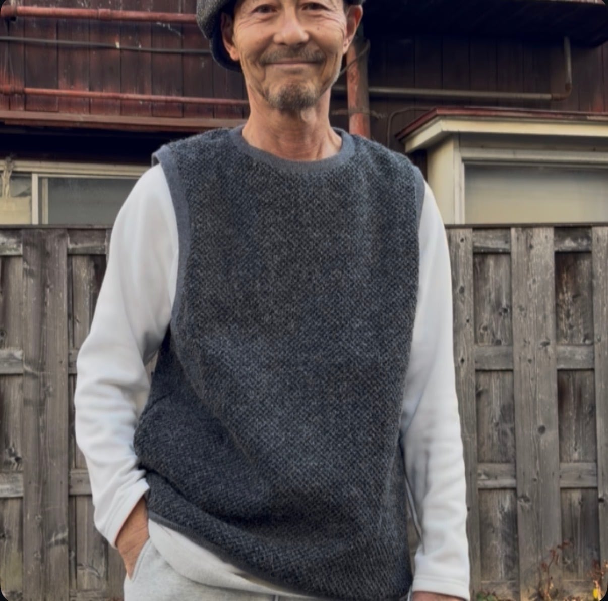 紡毛ウールのプルオーバーベスト