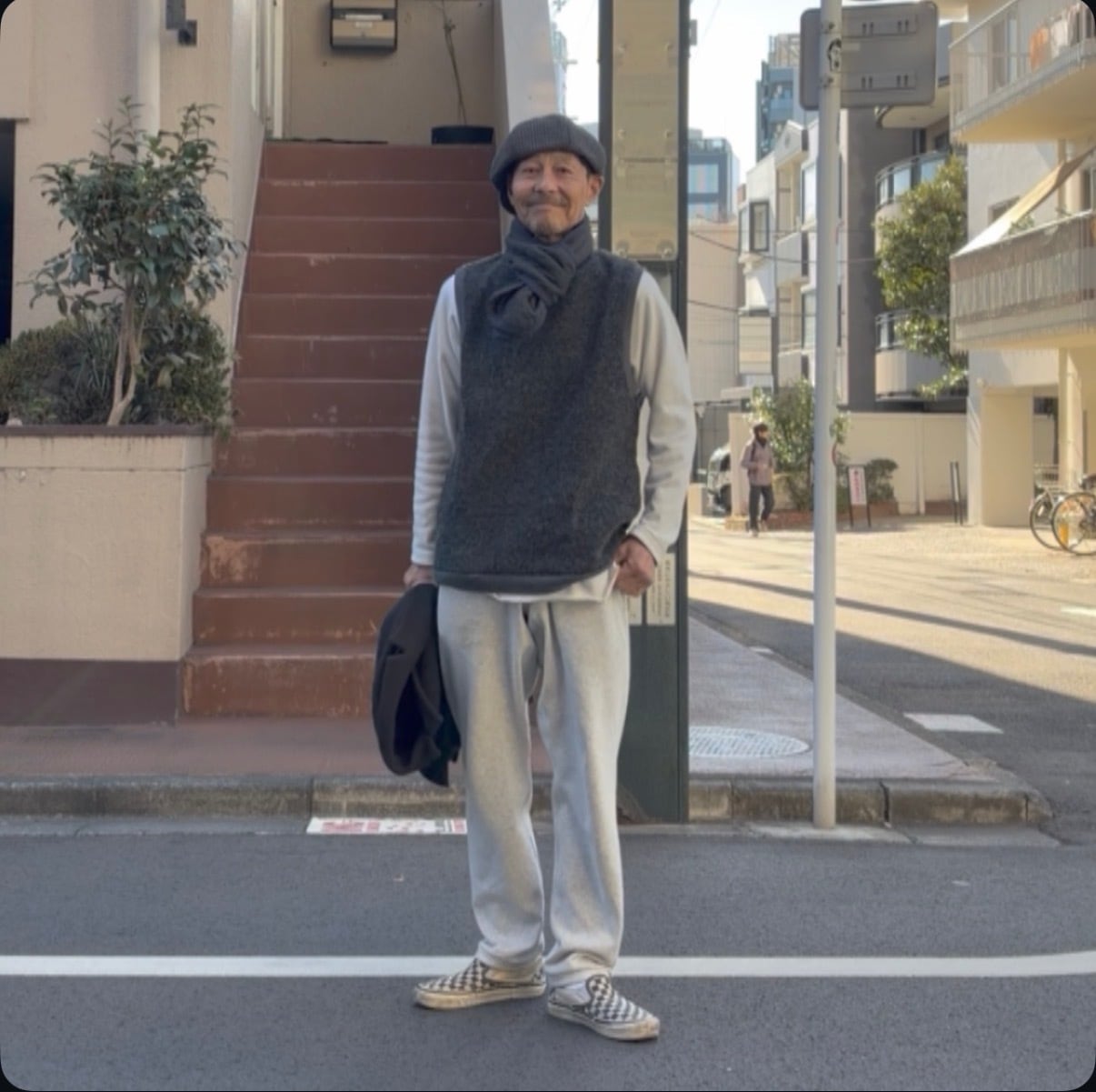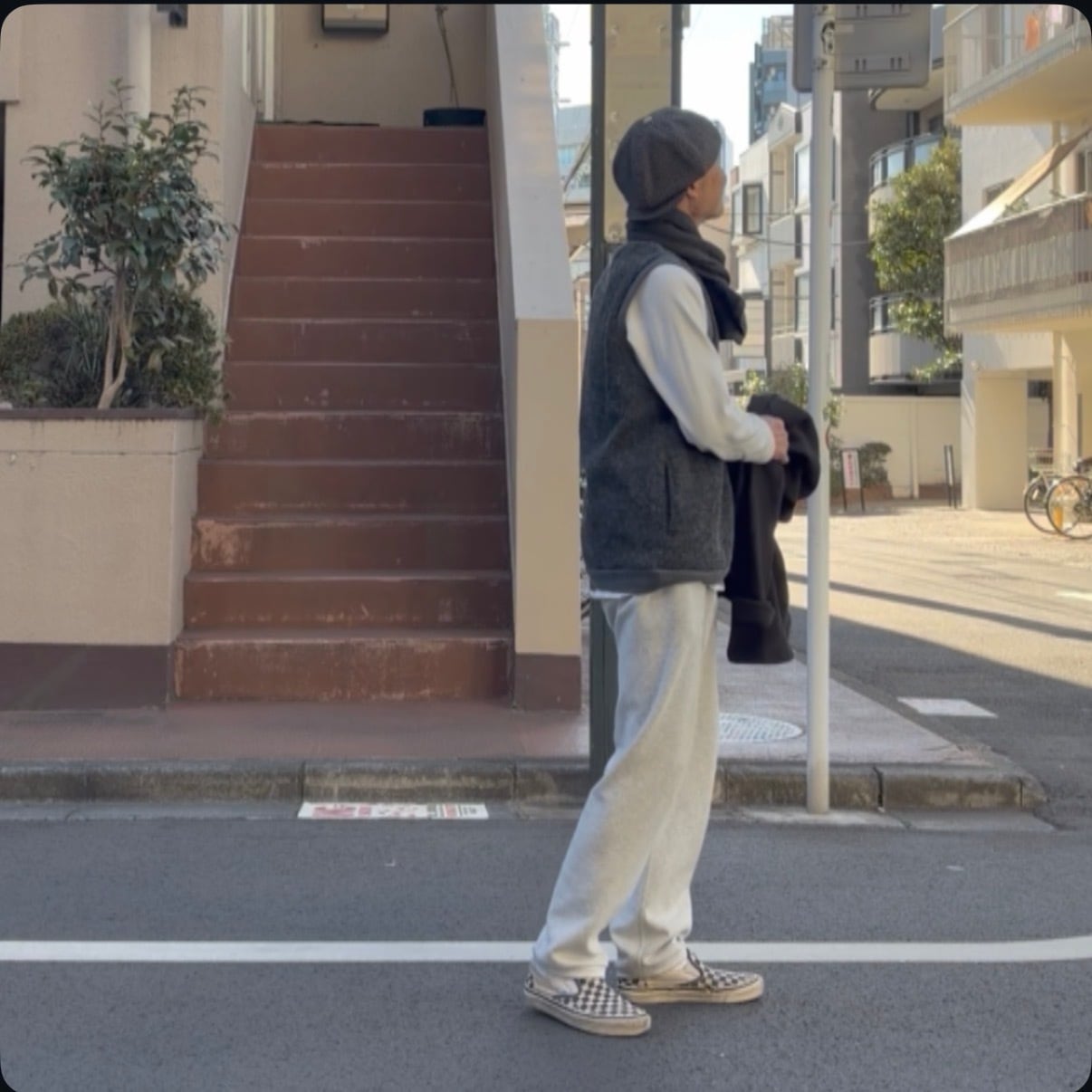 アームホールをゆったり取っておりますのでビッグなサイズのものとでも合わせやすくなっています ネック アームホール 裾にリブ使用したプルオーバーベスト サイドにスラッシュポケット付き