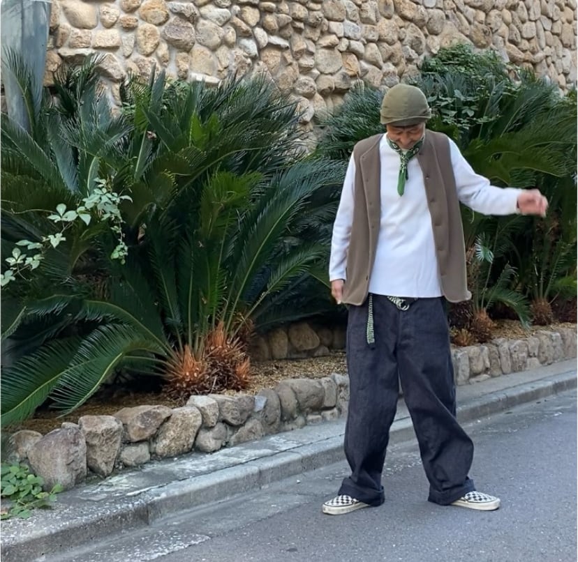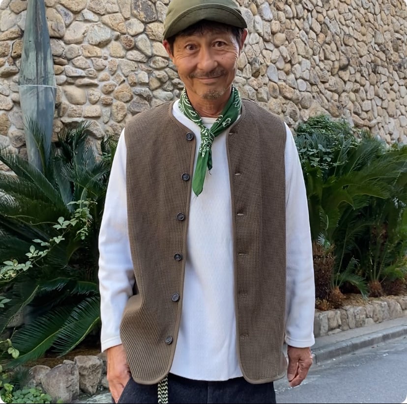 カットソーやシャツなどアクセントのあるコーディネイトが楽しめます また無地ながら凹凸感のあるワッフル編みは存在感もあります サイドにスラッシュポケット付き